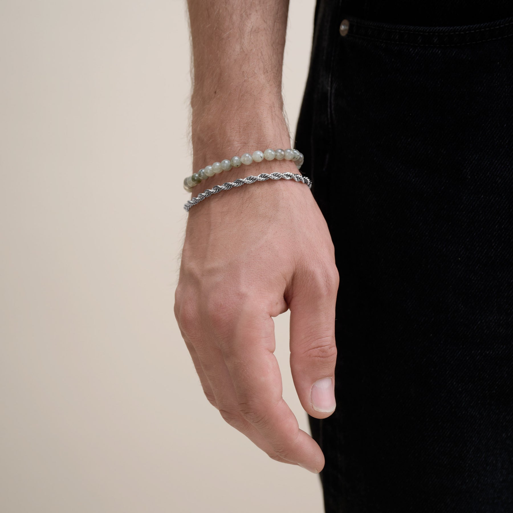 Naturlig appel møder moderne design med dette stenperlearmbånd til mænd. Med ægte stenperler og rustfri ståldetaljer tilbyder det en unik tekstur og varig stil. Fås i forskellige farver, der passer til din stil og dine behov.